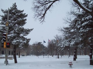 This is a pretty scene from the university in my town. We have about 14 inches of snow on the ground. Normally I’d be running around taking lovely pictures, but with an eye that is dilated, it’s nearly impossible, even with sunglasses! Boo, right?