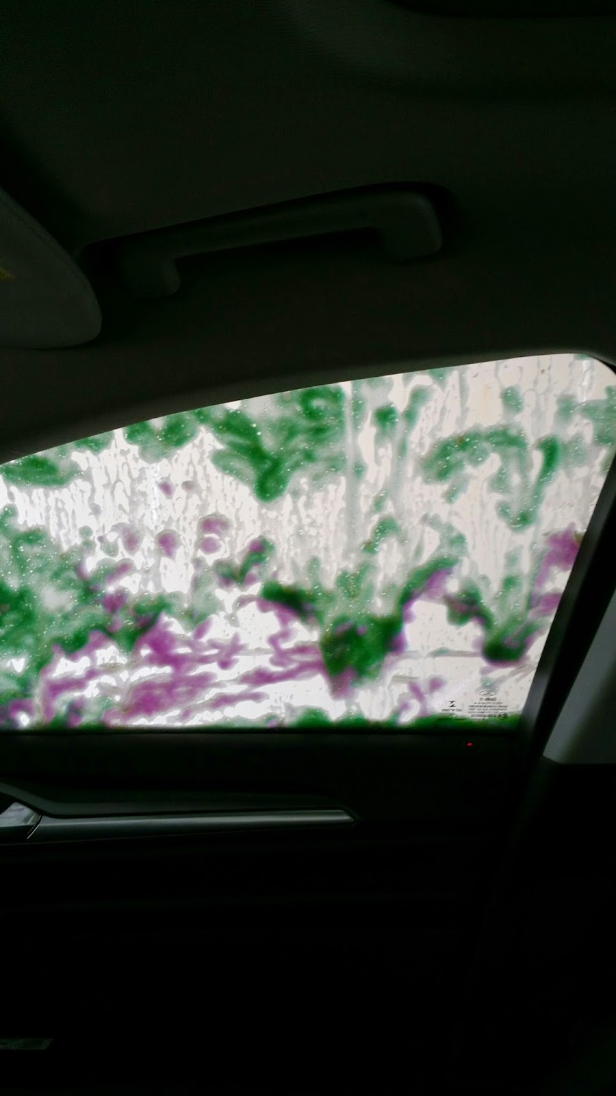 It’s been many years since I’ve been in an automatic car wash. I’ve never really wanted to spend the extra money so I’ve always done it myself. As I sat in my car with the radio turned off that day, I could hear the water trickling down my windows and pelting the side of the car. I noticed the patterns the water made as it ran down the windows. The best visual part of the car wash is the triple-shine protectant — a colored foamy substance that makes the most beautiful patterns (and smells pretty good, too).