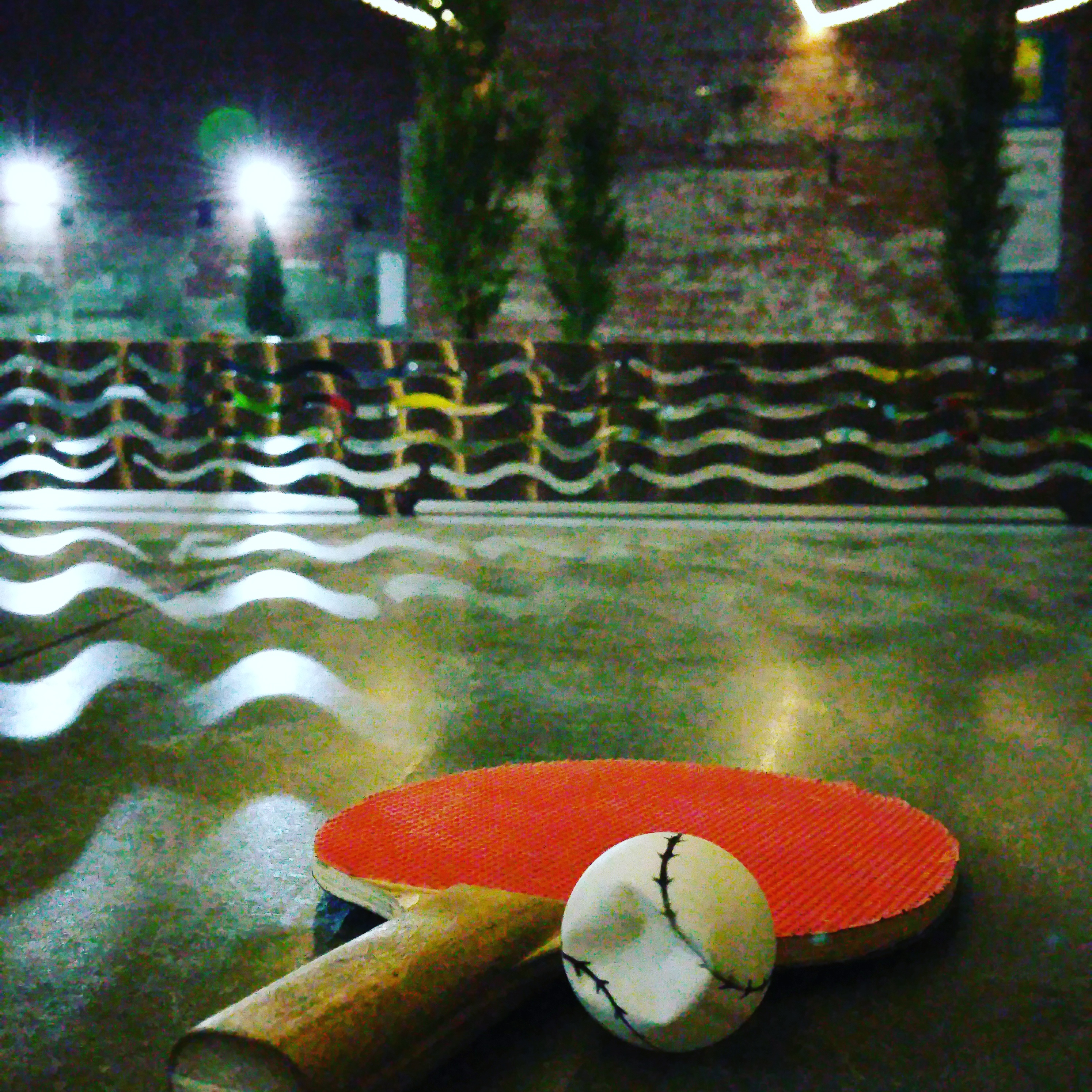 So, at 10 at night — in the string-lit park, mom and I decided to play. And we decided we suck at ping pong, but it provided some good laughs.