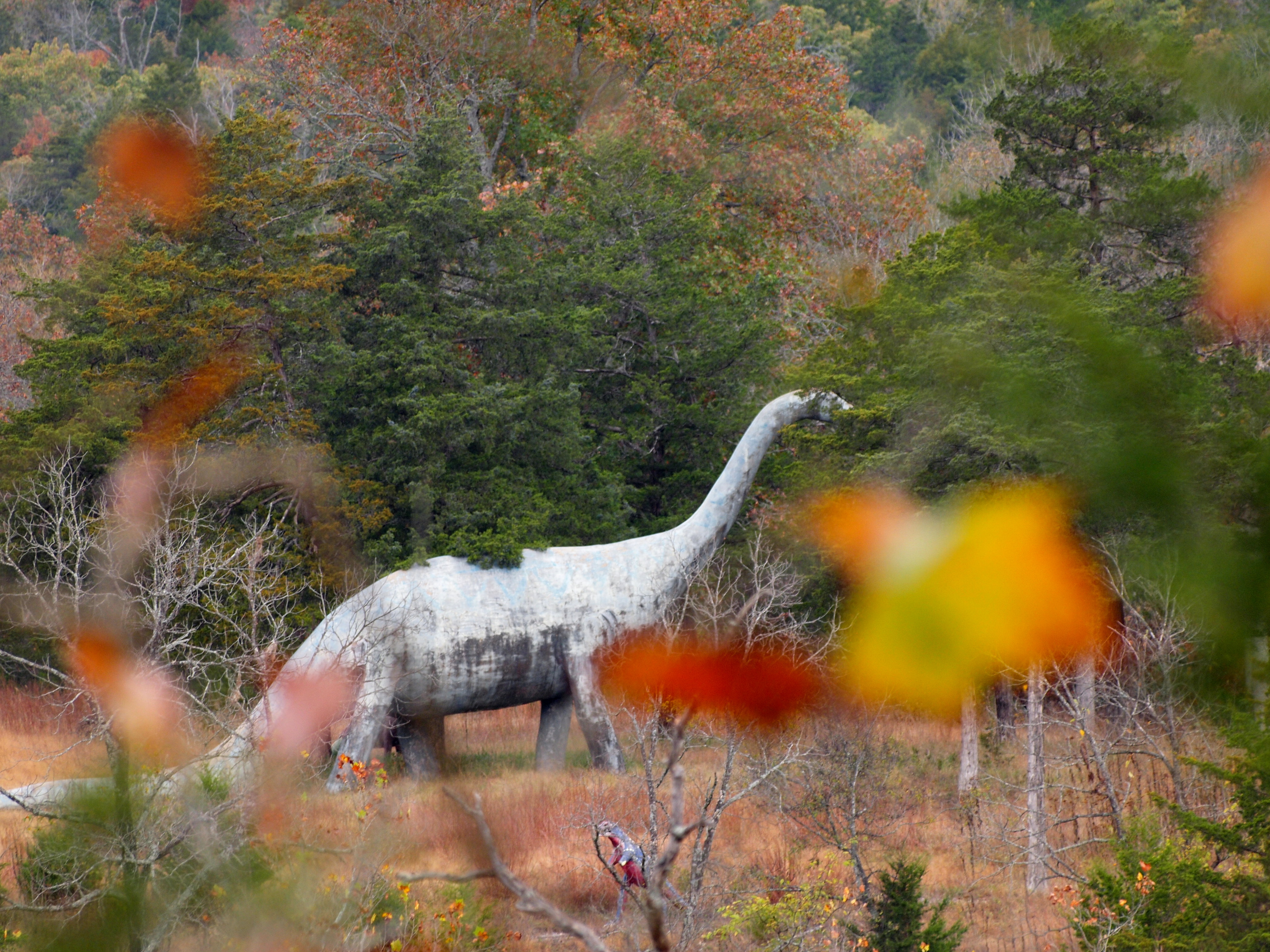 The park, which opened in the 1960s, was once the largest dinosaur-themed park in the United States. It once covered 65 acres and had 100 live-sized dinosaurs. It was also known as John Agar’s Land of Kong and Farewell’s Dinosaur Park.