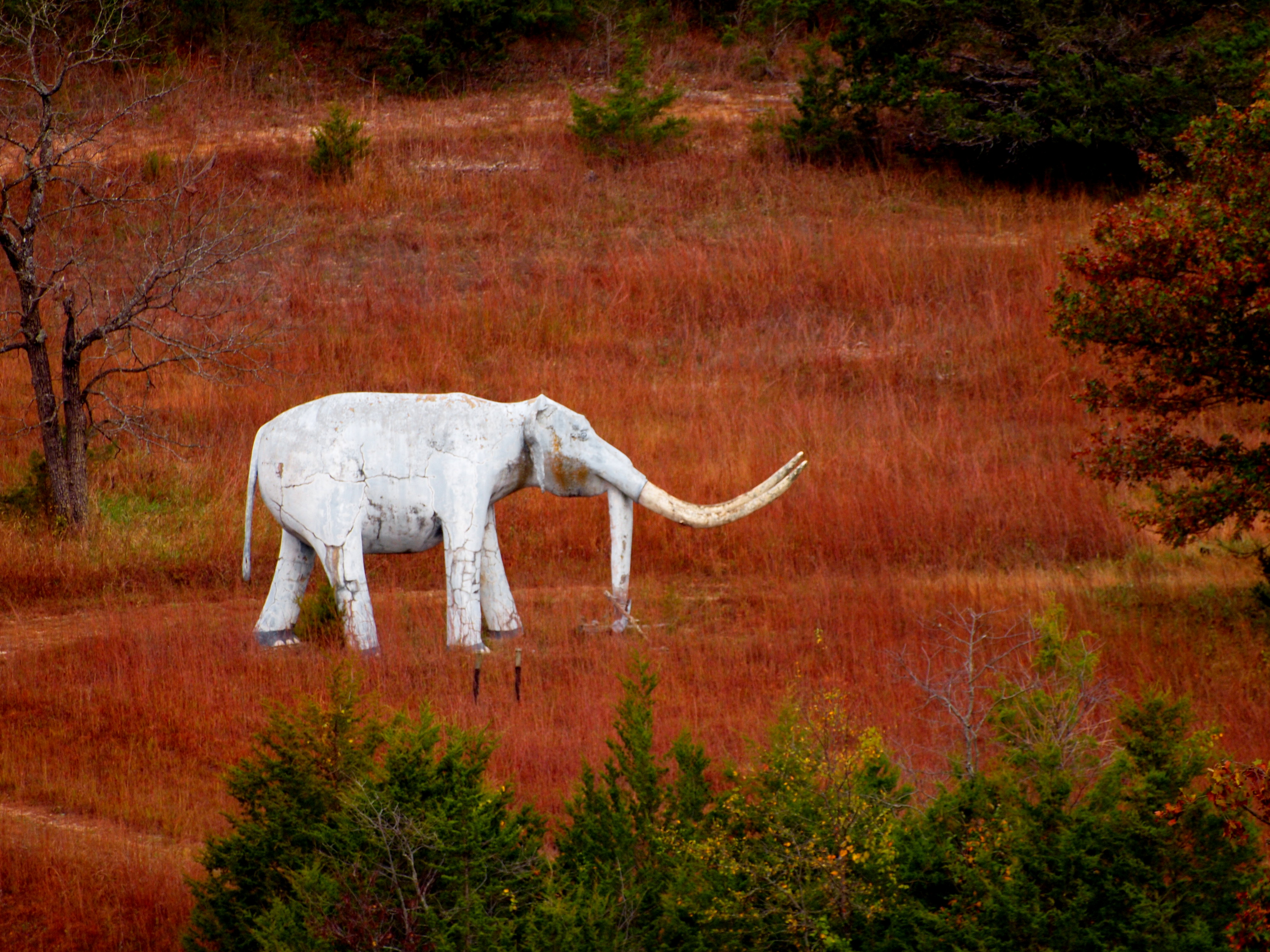 According to a post on http://www.abandonedar.com/, “The sculptures were created by Emmet Sullivan, who also designed the dinosaur statues in Dinosaur Park and Wall Drug in South Dakota, and the Christ of the Ozarks statue in nearby Eureka Springs, Arkansas. Two local men, A. C. McBride and Orvis Parker handled the actual construction of the dinosaurs.