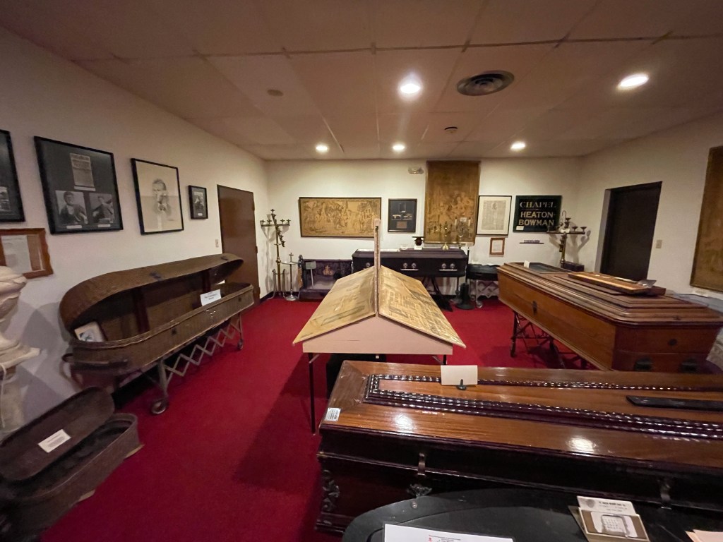 This museum is a little-known secret. We found by Googling quirky things to do in St. Joseph, Mo. To gain access in the most respectful way, I suggest calling ahead to ensure there isn’t an active funeral going on. Heaton-Bowman is an active funeral home, so always be sure to respect mourners. We called ahead at (816) 232-3355 and asked if we could go see the museum. They ask you to come to the front desk and they’ll take you to the hidden gem.
